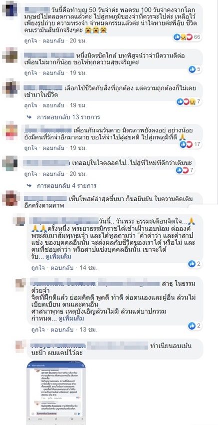 “อนุโมทนาสาธุด้วยนะคะ ขอให้จ่าไปสู่ภพภูมิที่ดี หมดห่วง หมดบ่วง หมดเวร หมดกรรม อภัยทาน กับทุกสิ่งทุกอย่างนะคะ” ขณะที่บางคนเห็นต่างยังโกรธแค้นจ่า เข้ามาแสดงความคิดเห็นโต้แย้งจนกลายเป็นดราม่าขึ้นมาด้วย